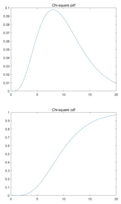 관련 MATLAB 함수: chi2pdf, chi2cdf, chi2inv, chi2rnd