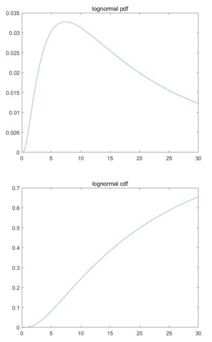 관련 MATLAB 함수: lognpdf, logncdf, logninv, lognrnd