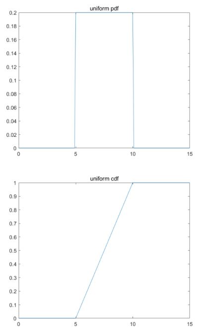 관련 MATLAB 함수: unifpdf, unifcdf, unifinv, unifrnd