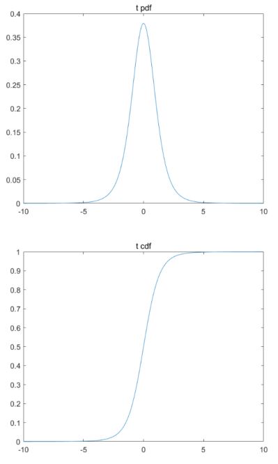 관련 MATLAB 함수: tpdf, tcdf, tinv, trnd