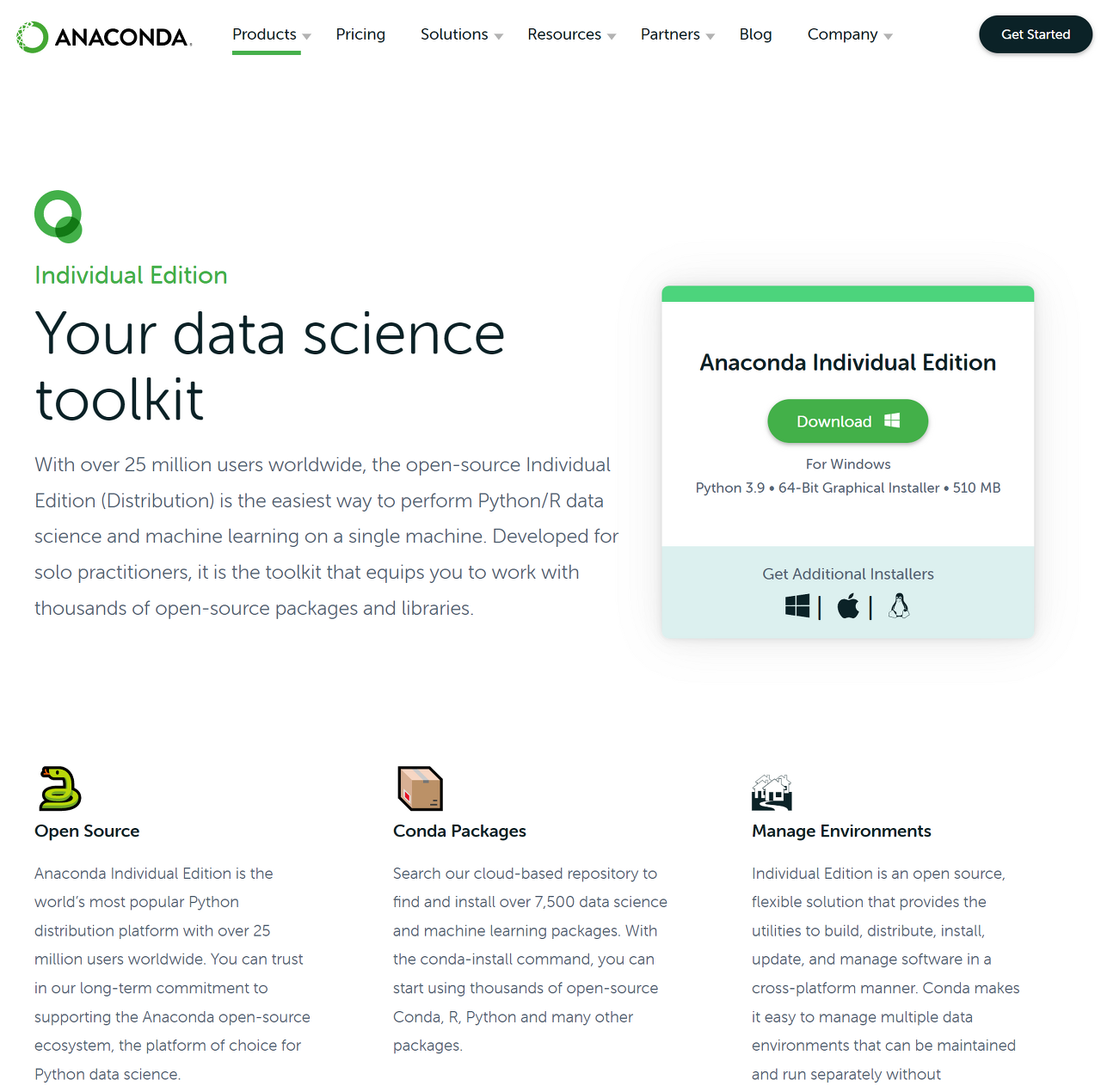Anaconda's open-source Distribution is the easiest way to perform Python/R data science and machine learning on a single machine.